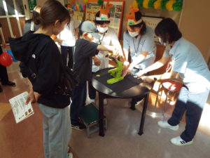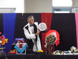 謎の男スマイリーフジの大マジックショー、こども広場ではわためのプレゼント・認知症サポートキャラバンロバ隊長の缶バッチ作りDr・Ns服に着替えて写真を撮るコーナーなど多くの家族連れでにぎわいました。